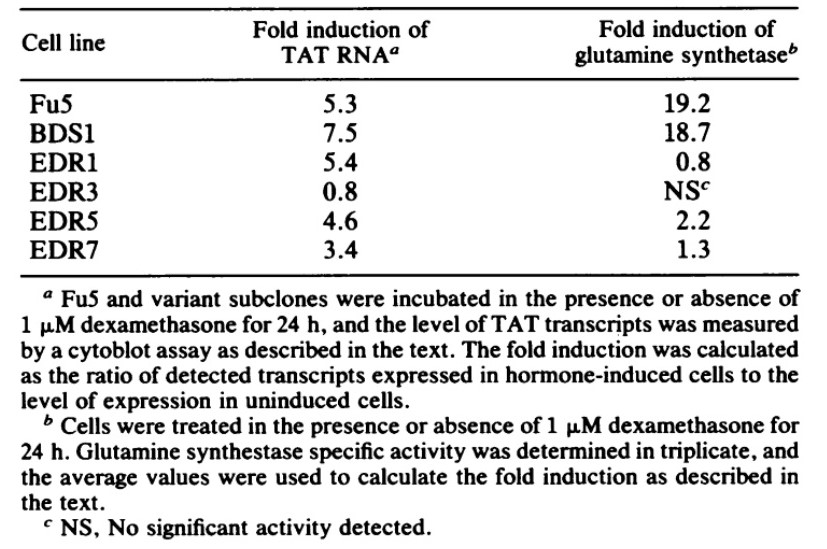 Table 1. Glucocorticoid responsiveness of Fu5 and variant subclones