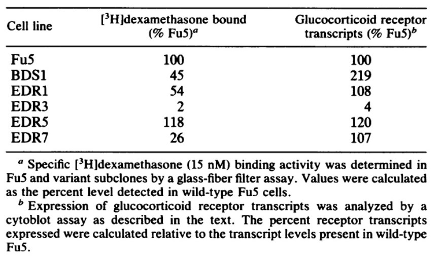 Table 2. Expression of glucocorticoid receptors in Fu5 and variant subclones
