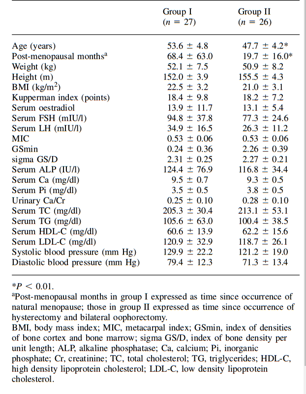 Table I. Characteristics of women with natural menopause (group I) and women with surgically induced menopause (group II).