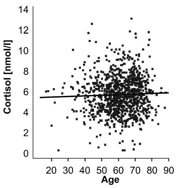 Figure 3. cortisol-levels and age in 1015 men (from Oettel et al. 2003a; with permission).