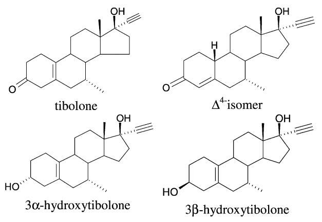 Figure 1. The chemical structure of tibolone and its metabolites.